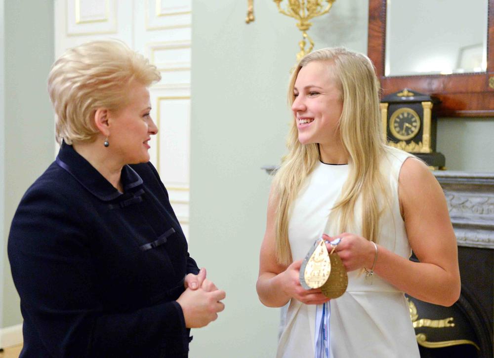 „Įsitvirtinusi geriausių sportininkių olimpe, nuolat stebini savo talentu, atkaklumu ir atsakingu požiūriu į treniruotes. Esi puikus pavyzdys kiekvienam Lietuvos jaunuoliui, kad galime ir turime siekti pergalių ten, kur esame stiprūs“, – sakoma Prezidentės sveikinime.