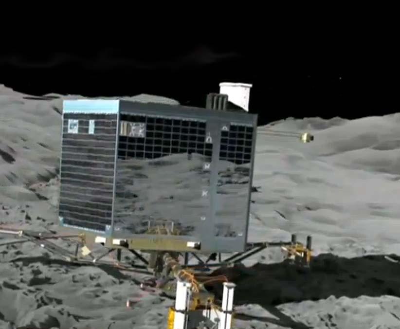 Pirmą kartą kosmoso tyrimo istorijoje mokslinis įrengimas pasiekė kometos paviršių. Ar šis vienas iš ambicingiausių žmonijos kosminių eksperimentų bus įvykdytas sėkmingai iki galo dar nėra visiškai aišku, mat sėkmingai ant kometos nusileidusiam moduliui „Philae“ prisitvirtinti prie jos paviršiaus nepavyko nes neiššovė specialūs modulio fiksavimo harpūnai. Kadangi kometos gravitacija yra labai maža „Philae“ bet kada gali nuo jos atitrūkti ir nuskrieti į kosminę erdvę.