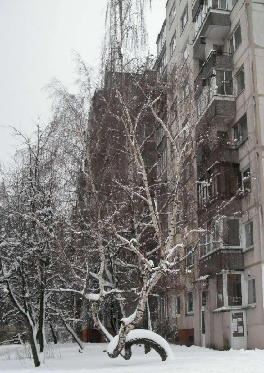 Už jo, visiškai šalia, auga dar keli tos pat rūšies ir panašaus amžiaus beržai su lygiai taip pat žemyn nusvirusiomis šakų kasomis, bet jie išaugę tiesūs ir siekia devynių aukštų namo viršutiniuosius aukštus.