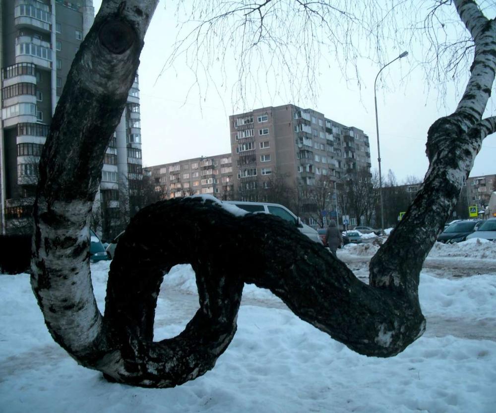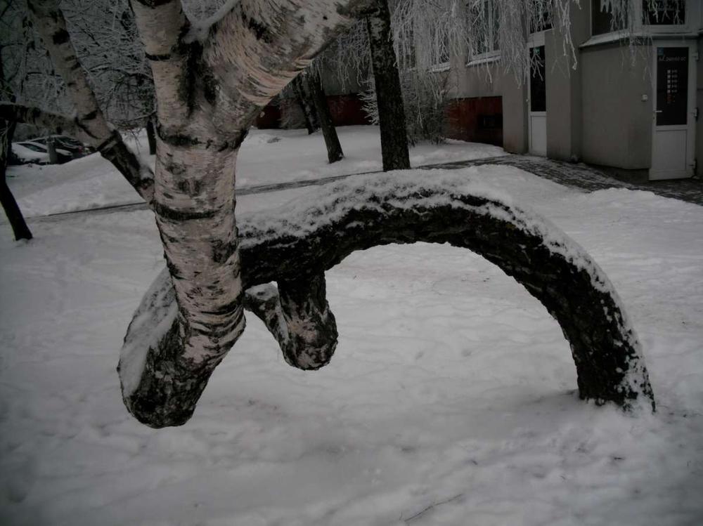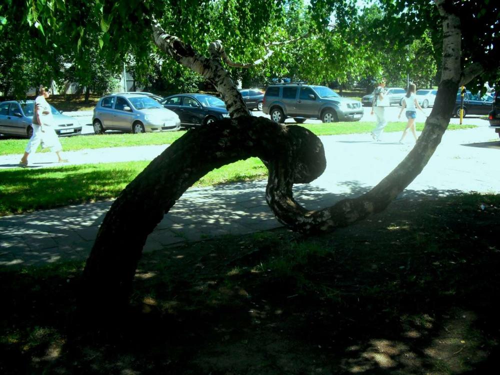 Klausinėjau: gal kas nors specialiai jį taip išlankstė, kai buvo jaunas? Labai retai kas šituo užsiima, bet juk yra mėgėjų: atsargiai, kad nelūžtų, išlenkia, pakreipia pagal savo fantaziją, suvaržo, užfiksuodamas padėtį, tai medis ir auga pagal žmogaus įgeidžius.