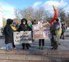 Perskaitomas akcijos dalyvių kreipimasis į Prezidentą, raginant jį ginti pažeidžiamas žmonių Konstitucines teises.