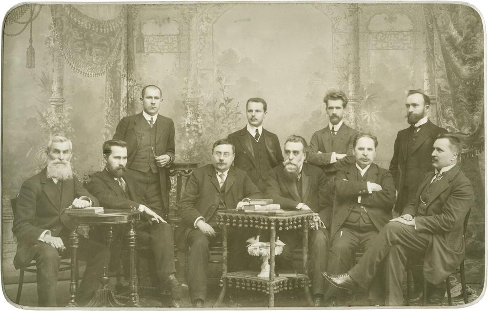 Iš kairės sėdi: Jonas Vileišis, Jurgis Šaulys, Justinas Staugaitis, Stanislovas Narutavičius, Jonas Basanavičius, Antanas Smetona, Kazimieras Šaulys, Steponas Kairys, Jonas Smilgevičius; iš kairės stovi: Kazimieras Bizauskas, Jonas Vailokaitis, Donatas Malinauskas, Vladas Mironas, Mykolas Biržiška, Alfonsas Petrulis, Saliamonas Banaitis, Petras Klimas, Aleksandras Stulginskis, Jokūbas Šernas, Pranas Dovydaitis