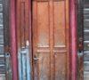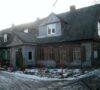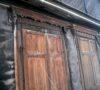 Pastarojo namo priebučio durys su pusvarčia, retas atvejis; retesnės (susiaurintos) formos ir skydeliai (15 nuotr.). Durys perdažytos, bet senoji žydroji spalva atkakliai tebeprasimuša…