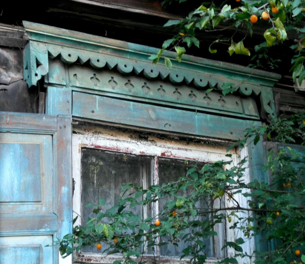 Šiame kadre ryškus ažūras, o spalvos, spalvos…; šičia žalsvai žydra. Ir dar vienas langas su jo „brolių“ puselėmis, – šitaip langai sutankinti (24 nuotr.). Vakarų fasade langinės kitokios, su įstriža (eglutės) apkala (25 nuotr.).