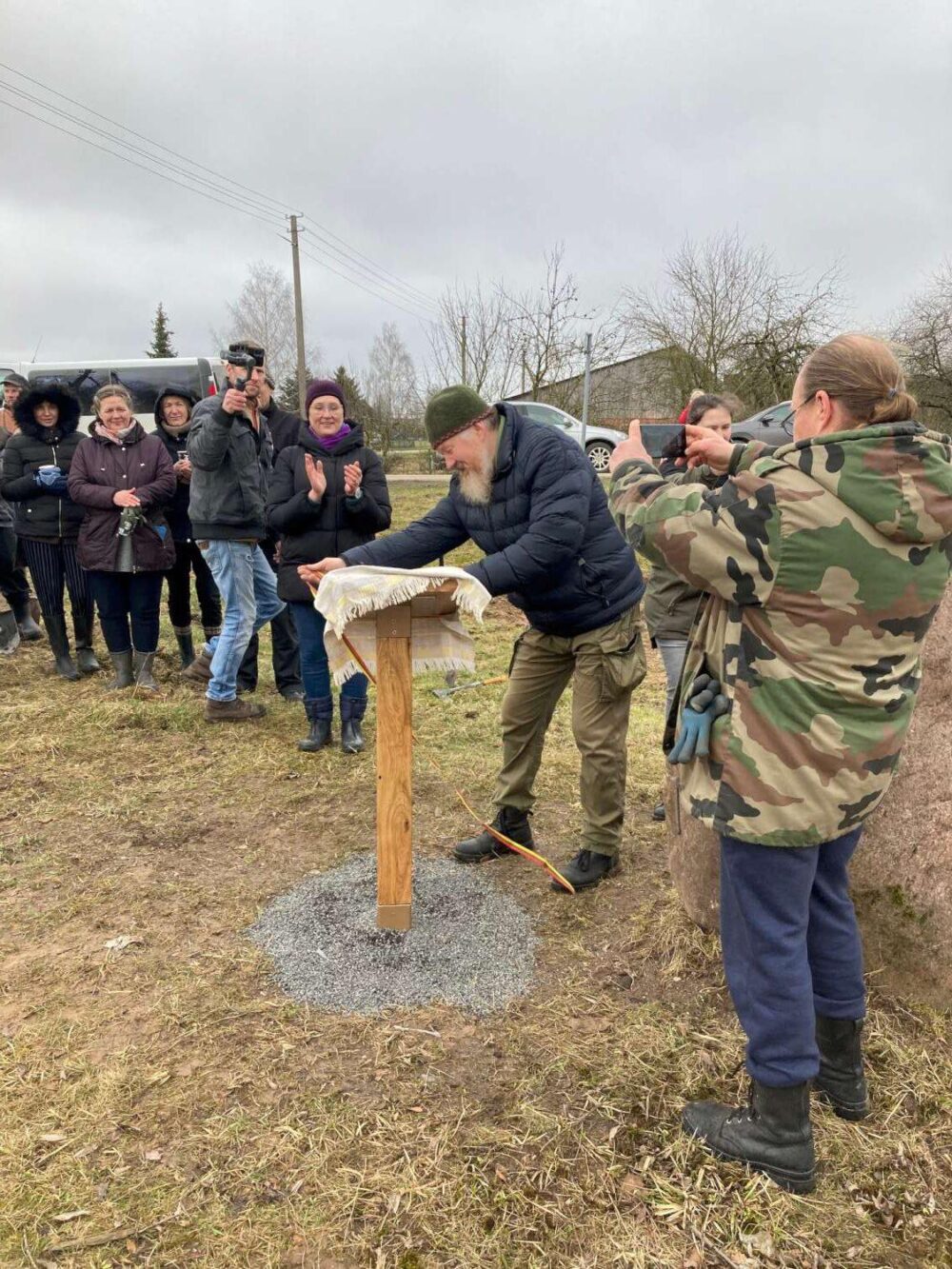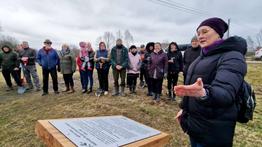 Atminimo lentą atidengė jos sumanytojas Arvydas Sviderskis, o joje įrašytus žodžius perskaitė seniūnė.