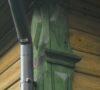 Name Nr. 17 nemažai elementų pakeista, perdirbta, bet įdomus pirminę formą (trikampis plius trapecija) su atitinkamos formos stogu, apkalos fragmentavimą ir langų išdėstymą išlaikęs stogo skydas (23 nuotr.). Išradingesnės formos ir veranda (24 nuotr.). Langinių apkaloje – eglutės motyvas kaip ir stogo skyde, tik šiam priešingas – tiesioginė atmaina.