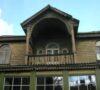 Fasadas asimetrinis. Ir štai tarsi akibrokštas šiai asimetrijai: simetriška antrojo aukšto centrinė dalis – balkonas su langais abipus jo (12 nuotr.). Pusapskritimiu lenktų arkų kompozicija: nuo tų langų fasade, balkono (13 nuotr.) iki durų ir langų triados, šios kompozicijos židinio (14 nuotr.).