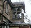 Pietvakariniame namo kampe yra laiptinės rizalitas (4 nuotr.). Savotiškai – savo padėtimi –sakytume, net iracionaliai, prisišliejęs prie namo. Jis viršuje, virš antrojo aukšto, susiaurintas, atidengiant stogo skydą su mansardos langu. Rizalito viršutinė dalis –bokštelio pavidalo (ar jis neprimena Pušų g. namo Nr. 43 taip pat laiptinės rizalito bokštelio? – 5 nuotr. ?).