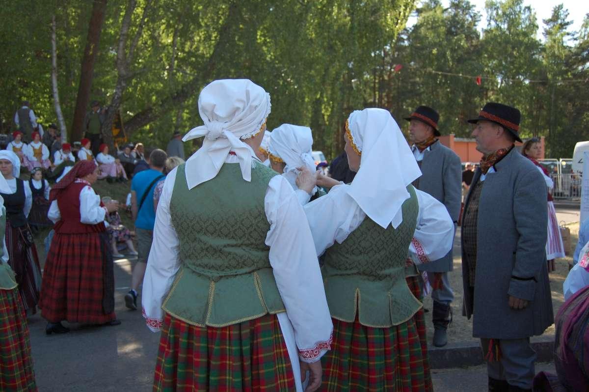 Jaunimas, senimas išsipuošę gražiausiais tautiniais drabužiais šėlsta, gražiai dainuoja, darniai šoka.