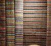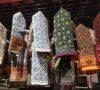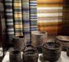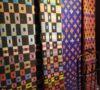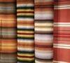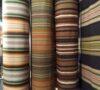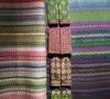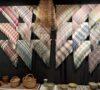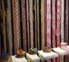 Įdomiai išeksponuotos panašių ir skirtingų spalvinių derinių lovatiesės ir skaros.