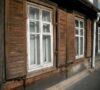 Namas Nr. 1. Jo pietų fasade – graži gerai išsilaikiusių langų rikiuotė: mediniai rėmai, pirminė stiklų skaida, žaliuzių stiliaus langinės iš horizontalių profiliuotų lentučių (1 nuotr.).
