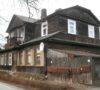 Priebučio į rizalito antrąjį aukštą (7 nuotr.) durys neabejotinai irgi pakeistos, šio šimtmečio, kaip kad matytos šiaurės fasade. Nekalbant apie tai, kiek jos čia bendrame paveiksle dera, vis dėlto įdomios (8 nuotr.). Panašu, jog iš tos pačios dirbtuvės kaip ir Kęstučio g. 18, Žvėryne (9 nuotr.).