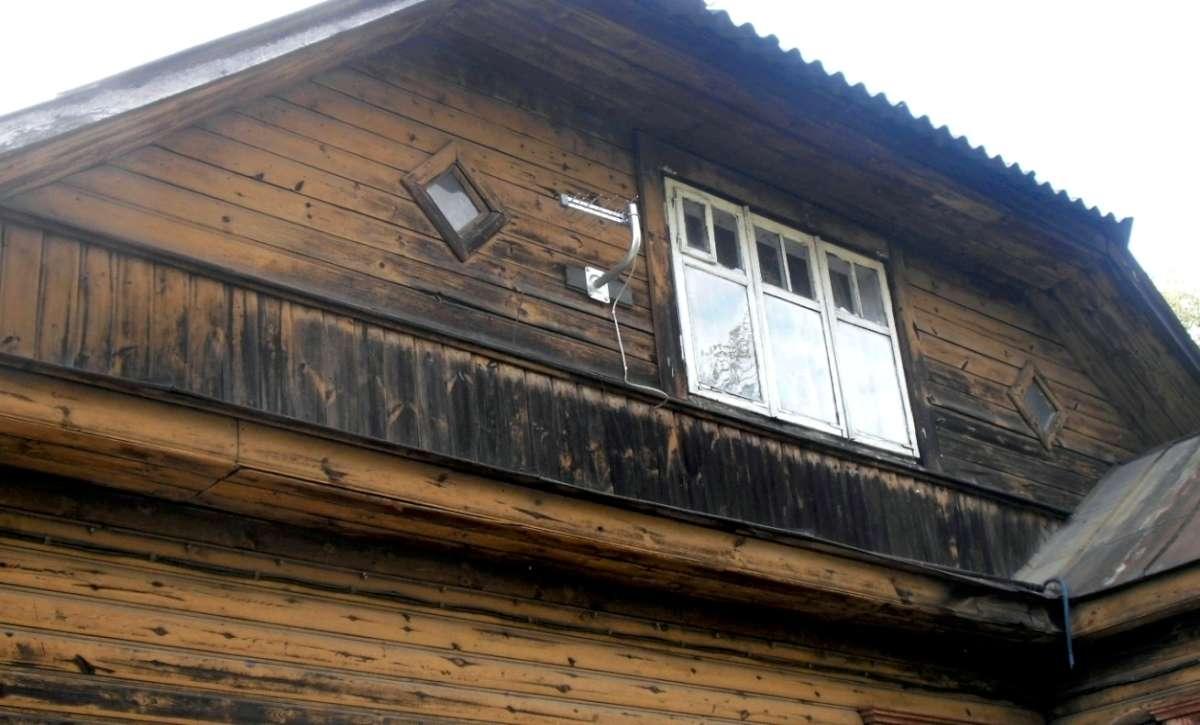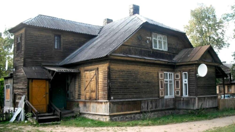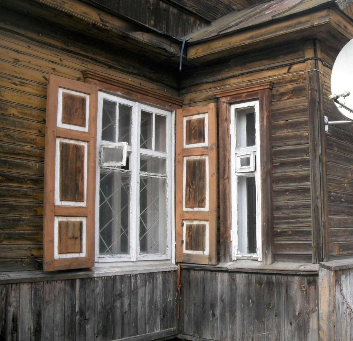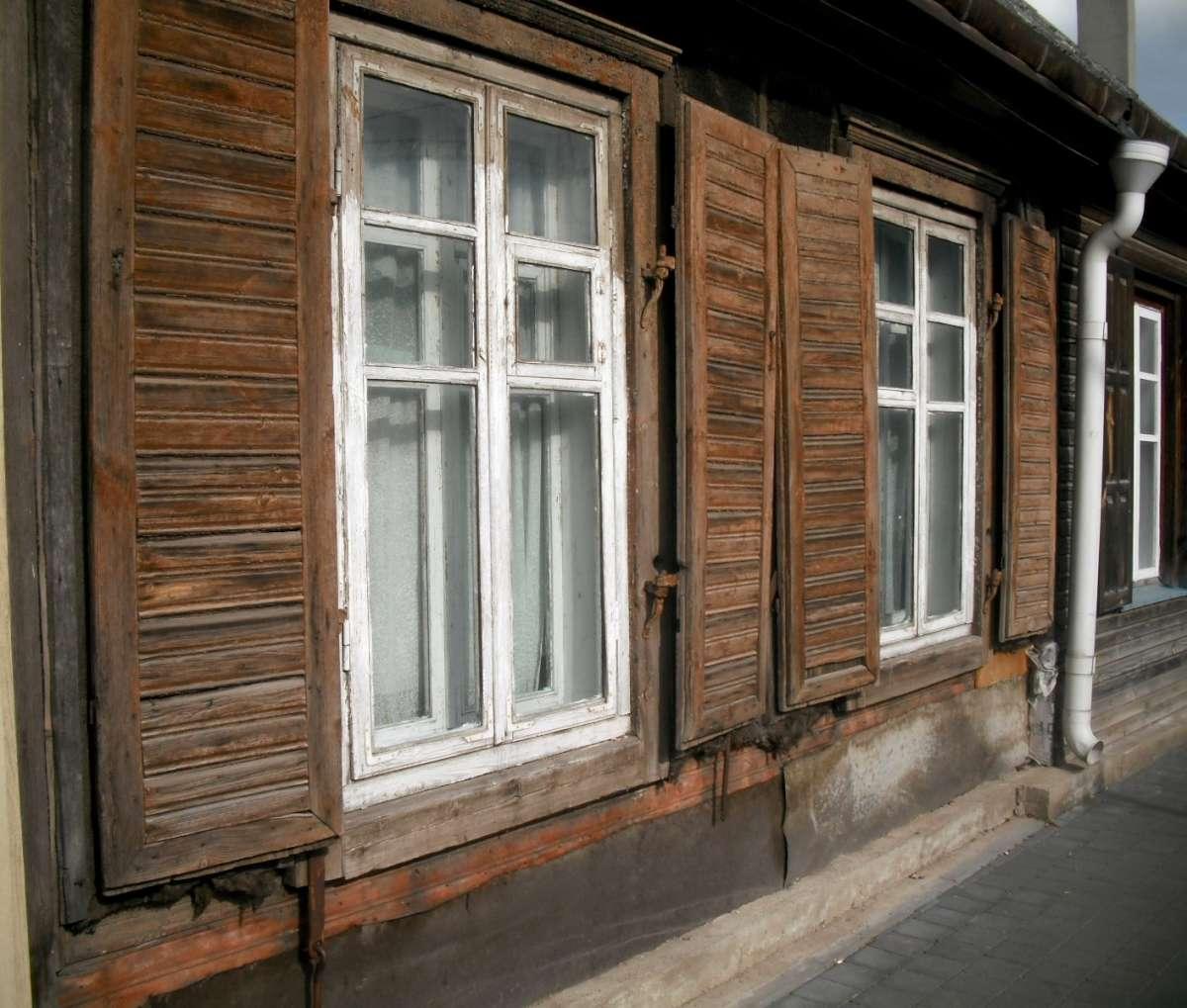 Namas Nr. 1. Jo pietų fasade – graži gerai išsilaikiusių langų rikiuotė: mediniai rėmai, pirminė stiklų skaida, žaliuzių stiliaus langinės iš horizontalių profiliuotų lentučių (1 nuotr.).