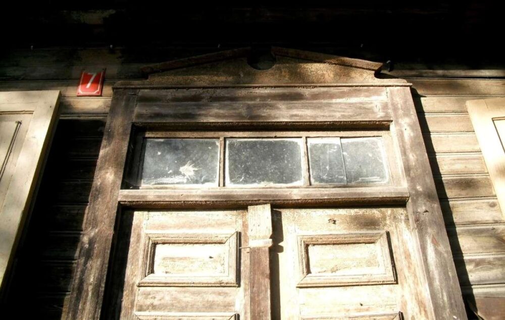 Priebučio į rizalito antrąjį aukštą (7 nuotr.) durys neabejotinai irgi pakeistos, šio šimtmečio, kaip kad matytos šiaurės fasade. Nekalbant apie tai, kiek jos čia bendrame paveiksle dera, vis dėlto įdomios (8 nuotr.). Panašu, jog iš tos pačios dirbtuvės kaip ir Kęstučio g. 18, Žvėryne (9 nuotr.).