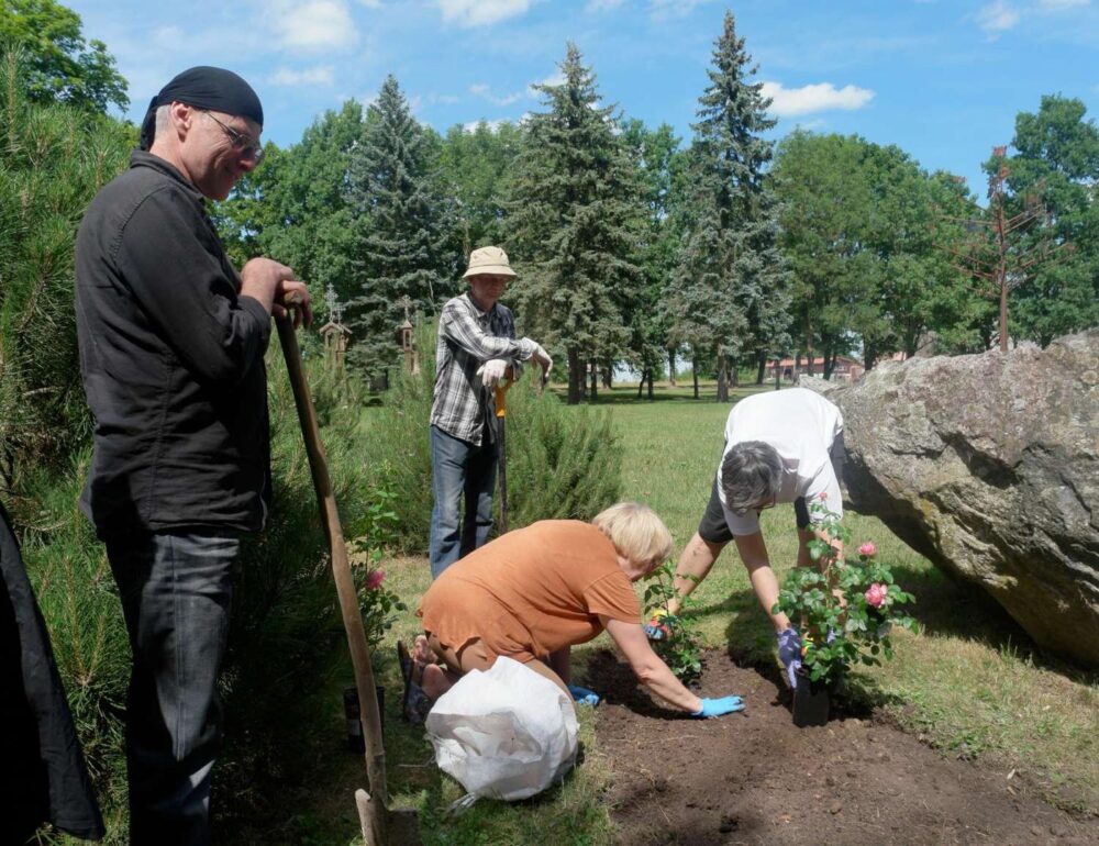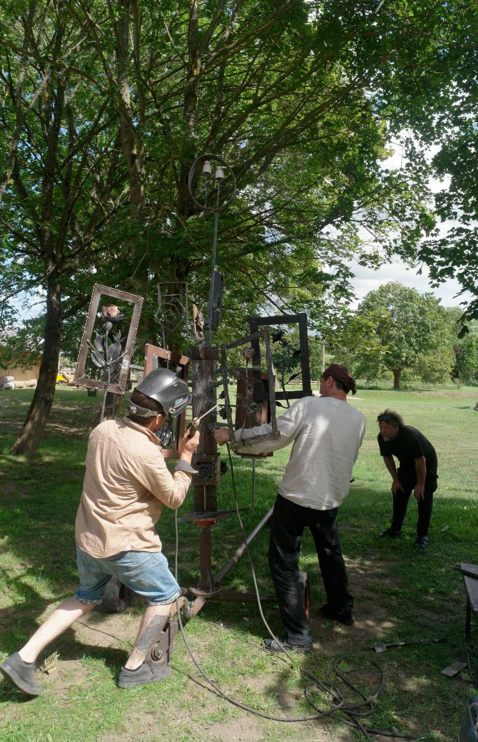 Stovyklos pabaigtuvių metu gausiai susirinkusiems svečiams kalviai demonstravo kalvystės amatą. Tačiau svarbiausia buvo pristatyti visuomenei ir pašventinti kalvių sukurtą ir ant medinės kolonos pritvirtintą grupinę skulptūrą ,,Rožės“, kuri iškilo greta pernai sukurtosios kolonos, pašvęstos Ukrainos gynybiniam karui. Kalviškos skulptūros ant medinių kolonų simbolizuoja vartus į dvaro sodybą, kurioje XIX a. pab. gyveno rašytoja Šatrijos Ragana“.