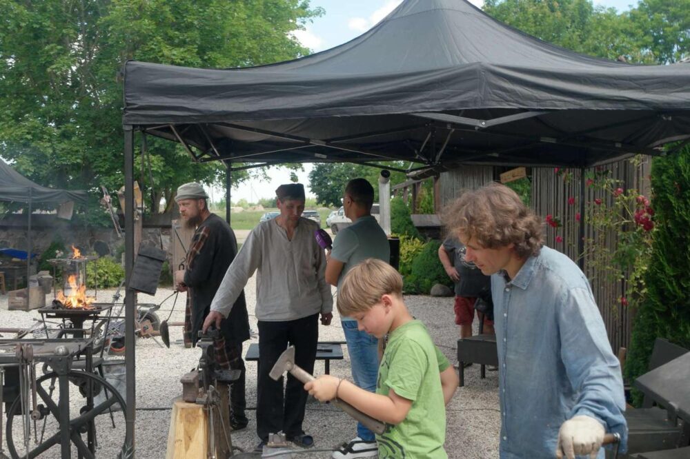 XIV meninės kalvystės ir šamoto skulptūrų kūrybinės stovykla ir akvarelės pleneras ,,Užventis MENE’23” šiemet Užvenčio dvaro malūne vyko liepos 10 – 14 dienomis. Renginio pradžioje žiūrovus pasitiko atverta jungtinė dalyvių kūrinių paroda ,,Anī tor kon pasakītė“, į kurią buvo iš anksto atrinki darbai, menininkų sukurti iki stovyklos: kalviškos žvakidės, lempos, vėtrungės, kryžiai, dekoratyvinės skulptūros ir puošybiniai elementai, akvarelės ir tapybos kūriniai, keramikos dekoratyvios skulptūros. O šventės baigtuvių proga ši paroda buvo atnaujinta stovyklos metu sukurtais kūriniais.