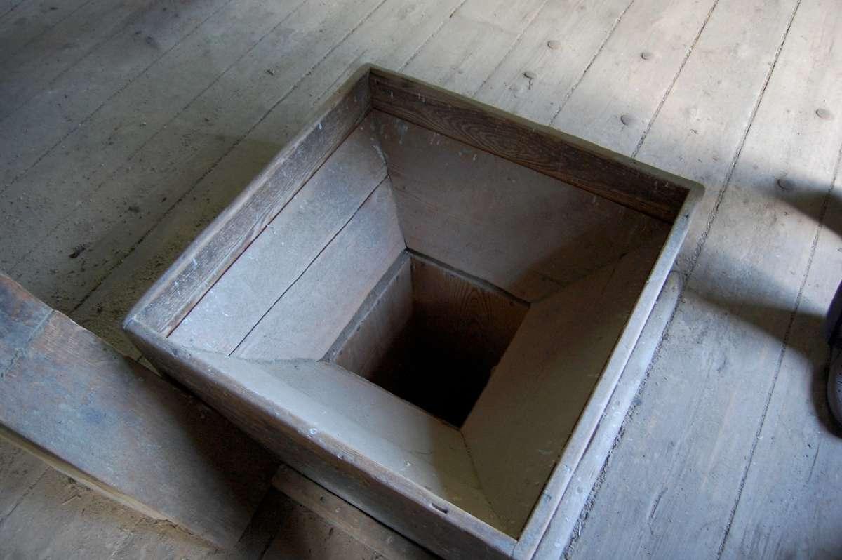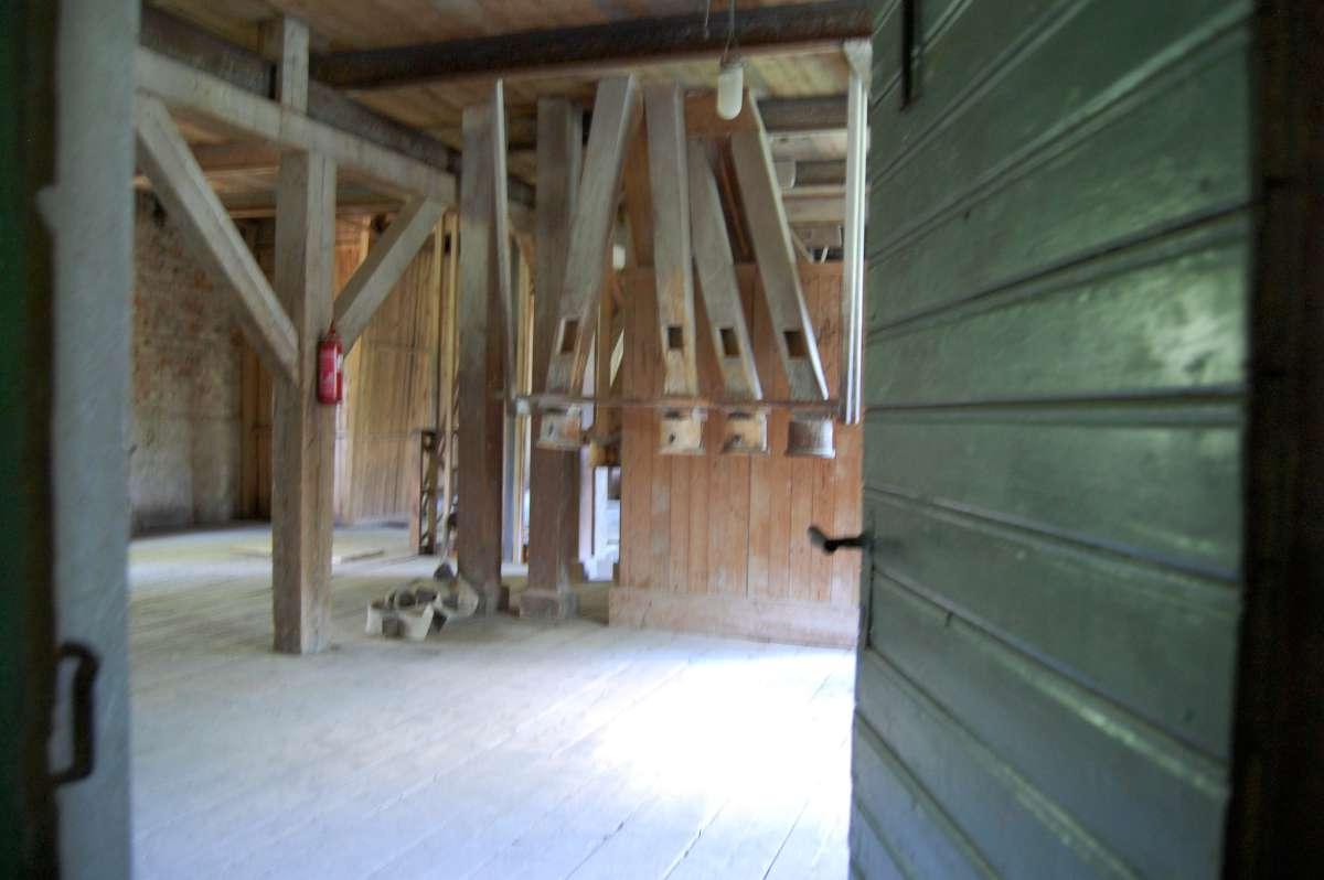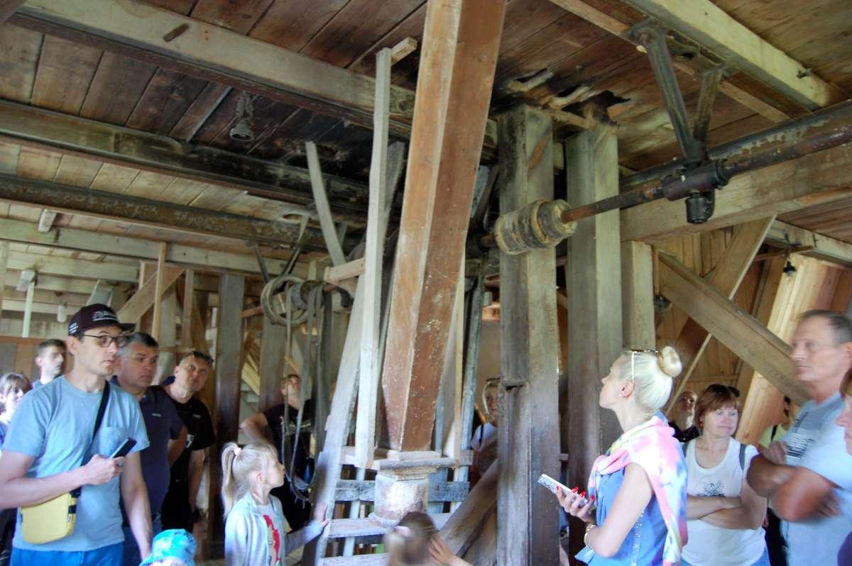 Švariai nupraustas malūnas. Augustaičių malūnas. Prie Papilės. Sako, viskas buvę po balta miltų luoba paslėpta: sienos, lubos, langai, įrenginiai… Viskas „apžėlę“ miltais.