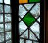 Languose išlikusi senoji pirminė stiklų skaida; polangiai drožinėti (13 ir 14 nuotr.). Drožinio variantas paplitęs, ypač dažnas Žvėryno senuosiuose mediniuose namuose (Pušų g. 19 ir 34, Traidenio g. 12 ir kt.), kartais paįvairintas išradingesniu vertikaliųjų apvadų drožiniu (15 nuotr.). Langinės neišliko.