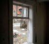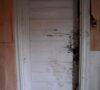 Durys iš verandos į namo vidų iš storų horizontalių lentų; durų apvadai profiliuoti (6 nuotr.). Dailiai profiliuoti lango apvadai (8 nuotr.).