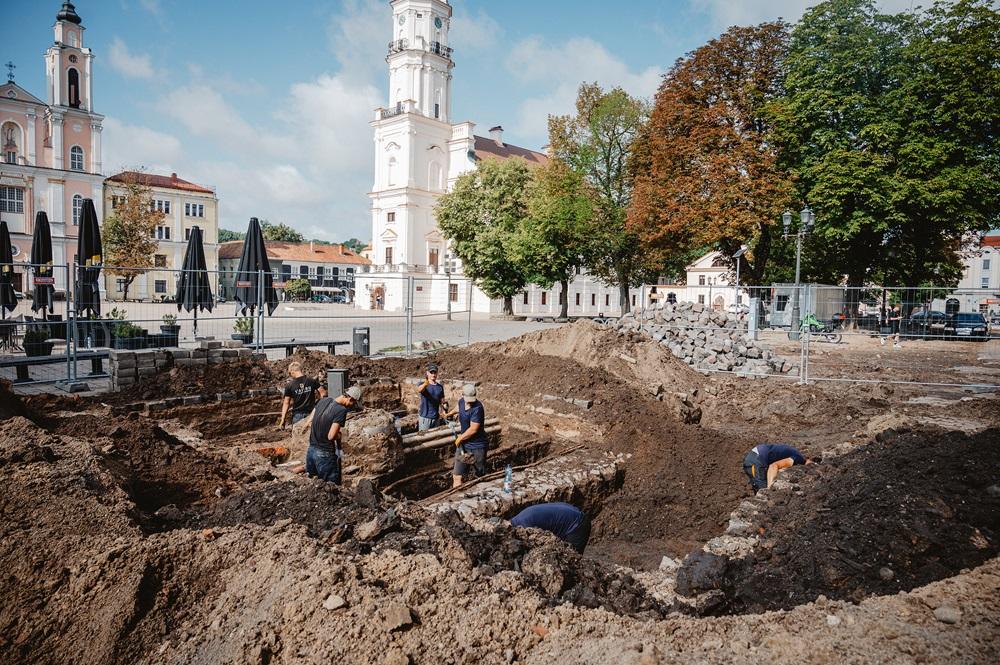 „Atliekant žemės darbus saugomose istorinėse teritorijose privaloma atlikti archeologinius tyrimus. Jie būtini ir prieš pradedant Rotušės aikštės rekonstrukciją. Tad pagal parengtą projektą čia jau kuris laikas darbuojasi archeologai.