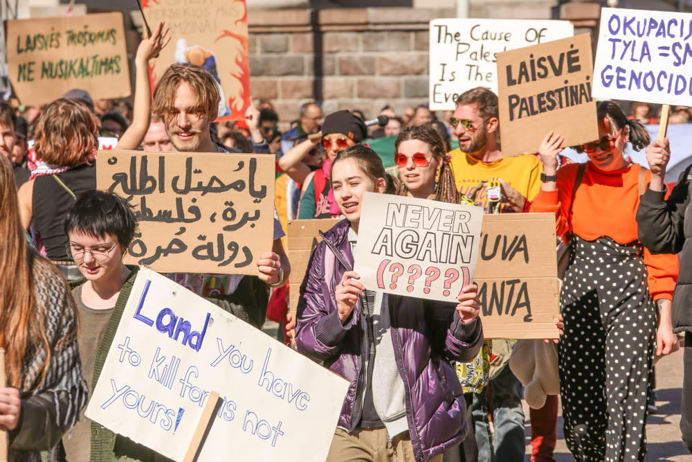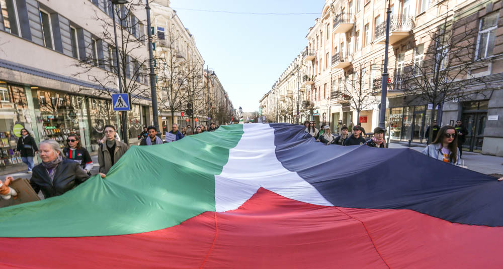 Vilniuje surengtos solidarumo su Palestinos žmonėmis eisenos organizatoriai priminė, kad ES turi imtis priemonių, kad ES šalys, tarp jų ir Lietuva, neprisidėtų prie okupacijos bei tarptautinės teisės pažeidimų.