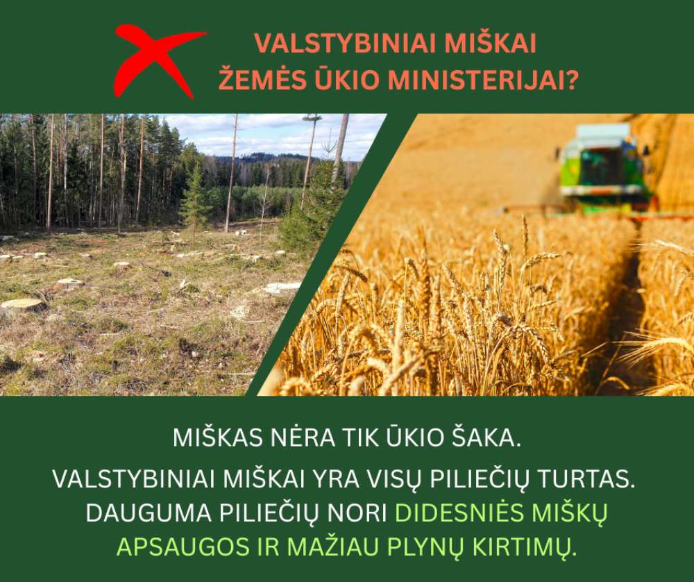 Prašome nepalaikyti XX vyriausybės programoje įtvirtintos vienpusiškos išskirtinai į medienos gavybos poreikius orientuotos miškų politikos. Neatiduokite valstybinių miškų valdymo žemės ūkio ministerijai.