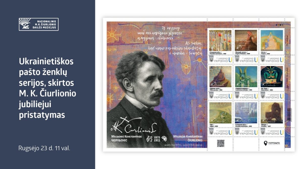 Rugsėjo 23 d., antradienį, 11 val. Nacionaliniame M. K. Čiurlionio dailės muziejuje (V. Putvinskio g. 55, Kaune) vyks pilietinio sumanymo „Help Ukraine“ ir „Ukrposhta“ išleistos specialios pašto serijos, skirtos 150-ajai Mikalojaus Konstantino Čiurlionio sukakčiai, pristatymas.