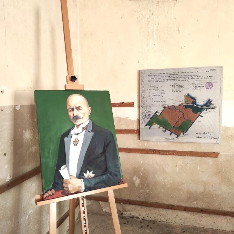 Dabartinis dvaro valdytojas Viktoras Jencius pristatė dailininko Mindaugo Skudučio sukurtą portretą, kuris ateityje atras garbingą vietą atsikuriančiame dvare.