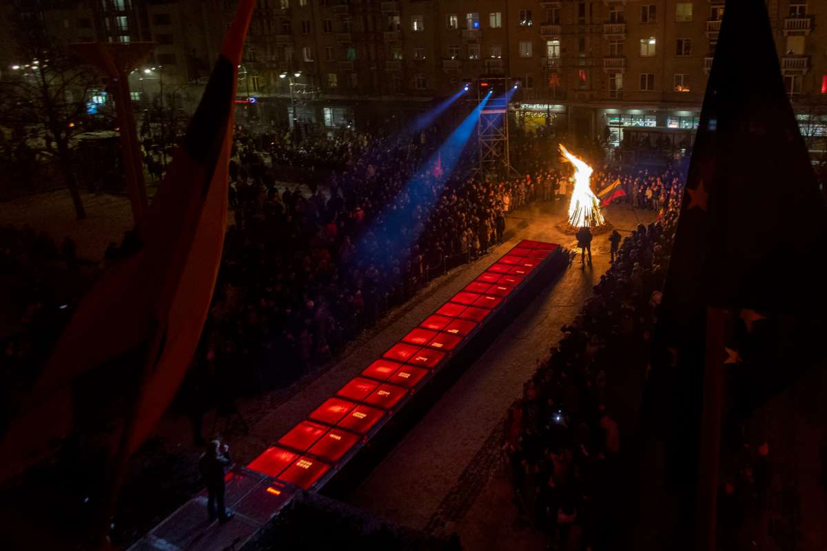 15. Vilniuje suliepsnojo atminties laužai, vėliavos spalvomis nušvito Televizijos bokštas (nuotraukos)