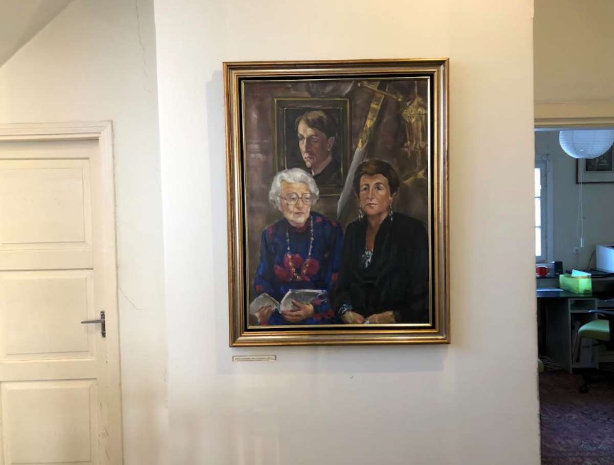 Nuotraukoje, pažymėtoje Nr.12, Dalia Sruogaitė prie tėvų namų Kaune tais pačiais metais. Ekspozicijos fragmentas, Balio ir Vandos Sruogų namai Kaune, 2026 m.