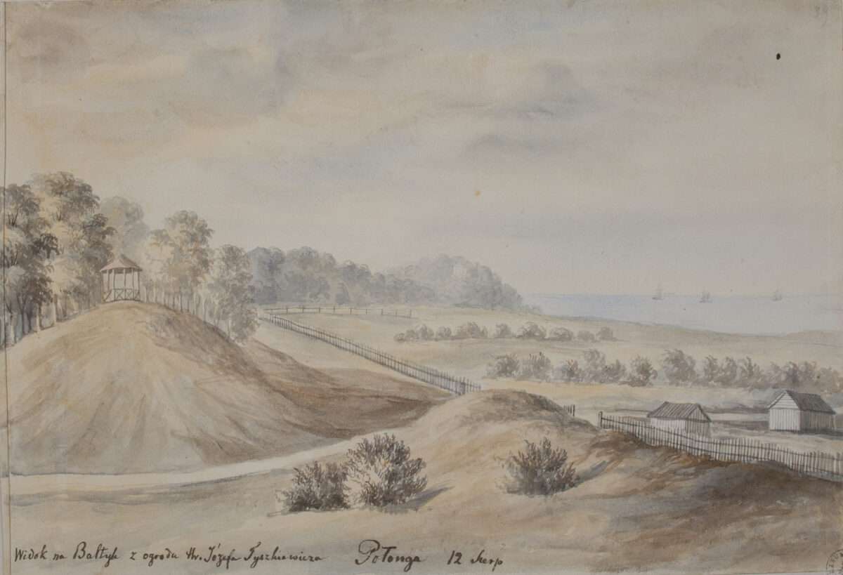 – Tai buvo akvarelė, vaizduojanti Palangą, Tiškevičių dvaro parką ir pavėsinę – ne tą dvarą, kurį mes žinome šiandien. Senasis Tiškevičių dvaras buvo medinis, visiškai kitoje vietoje – ten, kur dabar yra Basanavičiaus gatvė.