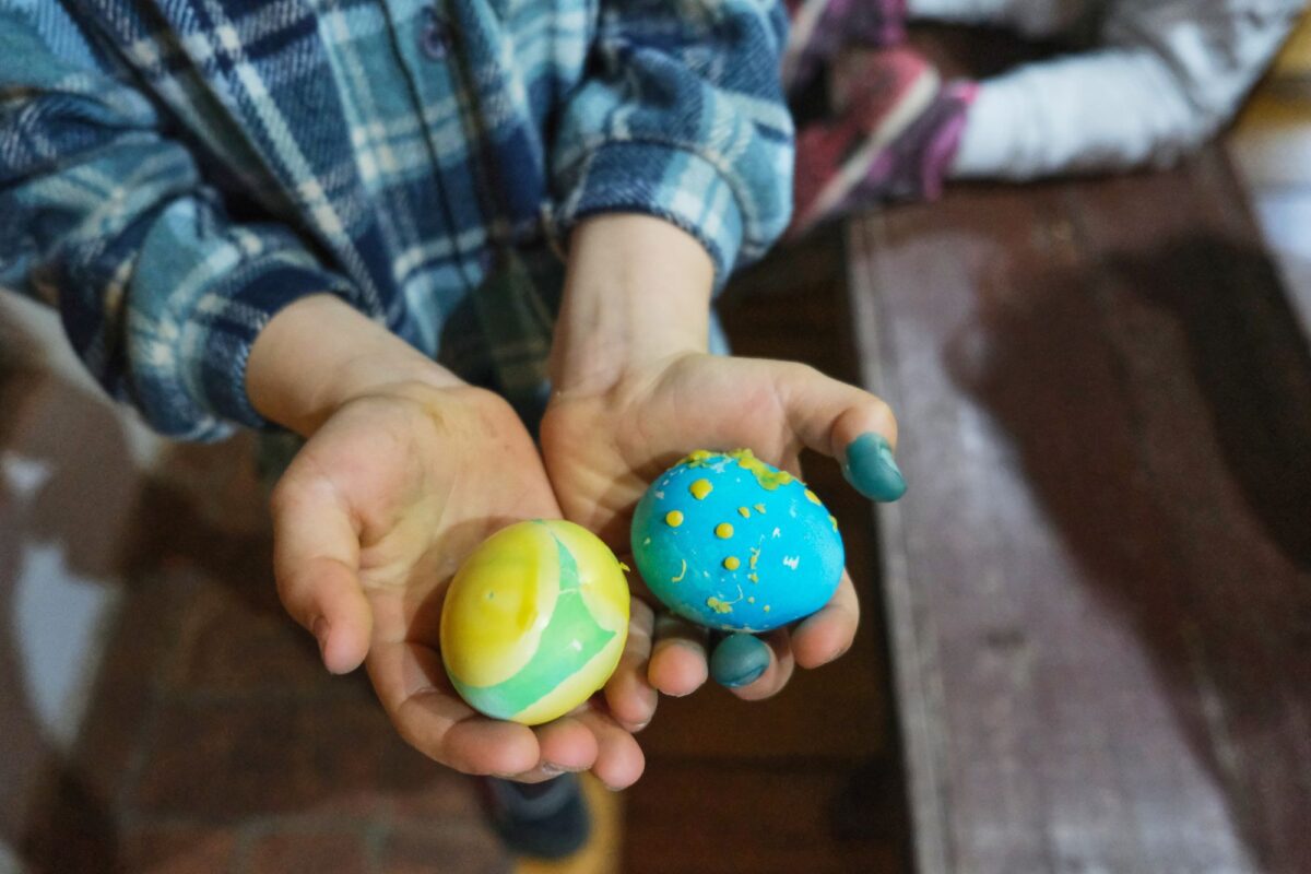 Senojoje gryčioje kvepės tirpstančiu vašku – vyks kiaušinių marginimo užsiėmimai. Į kovą išriedės margučiai – ką tik numarginti ir atsivežti iš namų.