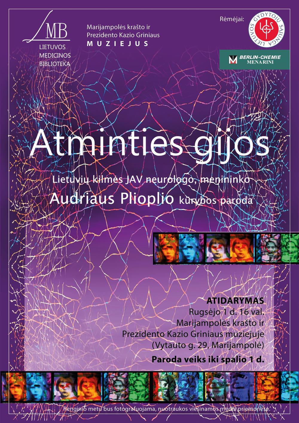 Rugsėjo 1 dieną 16 val. muziejuje (Vytauto g. 29) svečiuosis Čikagoje gyvenantis JAV savo medicininiais išradimais ir kūryba garsėjantis lietuvių kilmės neurologas bei menininkas Audrius V. Plioplys, kuris pristatys savo kūrybos darbų parodą „Atminties gijos“.